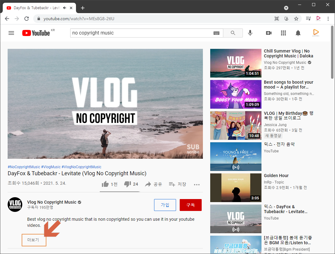 영상설명란의 [ 더보기 ] 를 눌러보면 Licence 표기를 확인할 수 있습니다.