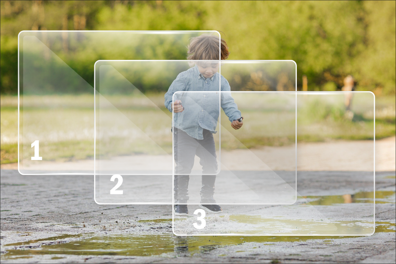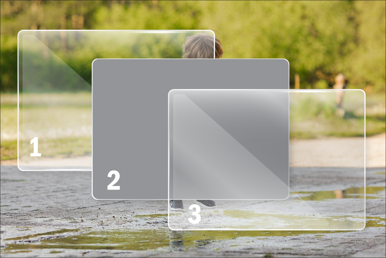 아래와 같이 두 장 이상의 필름을 겹치면 기본적으로 투명한 상태이기 때문에 아래쪽 필름의 글씨나 그림을 볼 수 있게 됩니다. 만약, 맨 위 필름을 전체적으로 색을 칠해버리면 아래쪽 필름 내용이 안 보이겠죠.