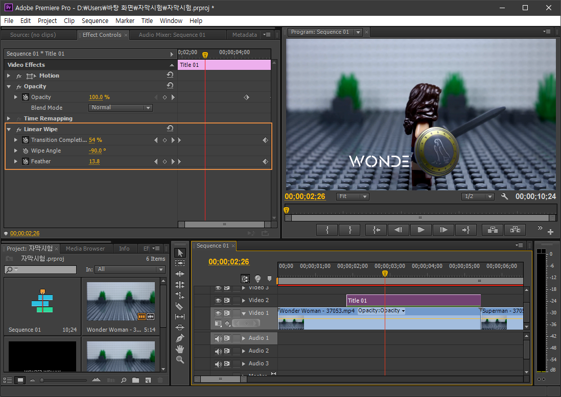 Video Effects - Transition - Linear Wipe (부드럽게 앞에서부터 뒤로 사라지는 효과도 가능)