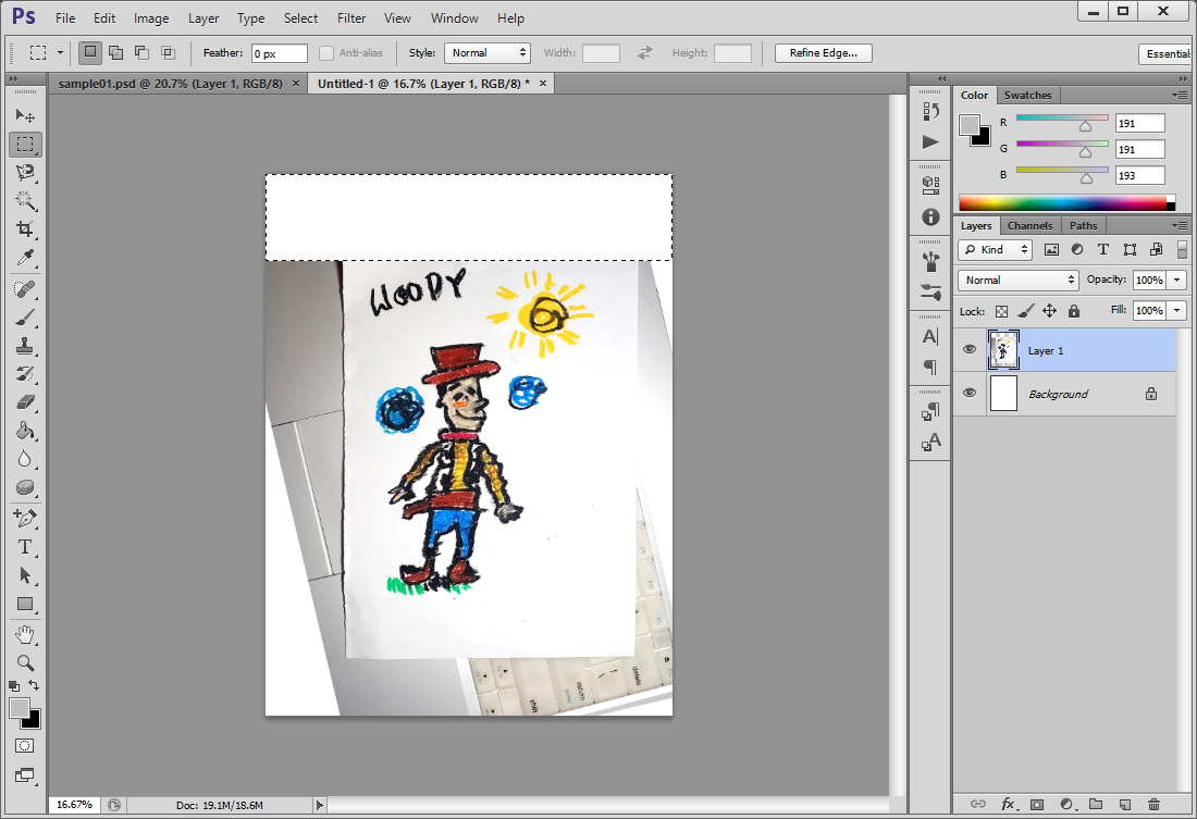 잘 지워졌는지 확인하기 위해서 다른 색상의 배경을 넣어보는 방법이 있습니다. 종이 자체가 흰색인데 흰색 배경을 넣고 확인하면 아무래도 확인이 어렵기 때문입니다.