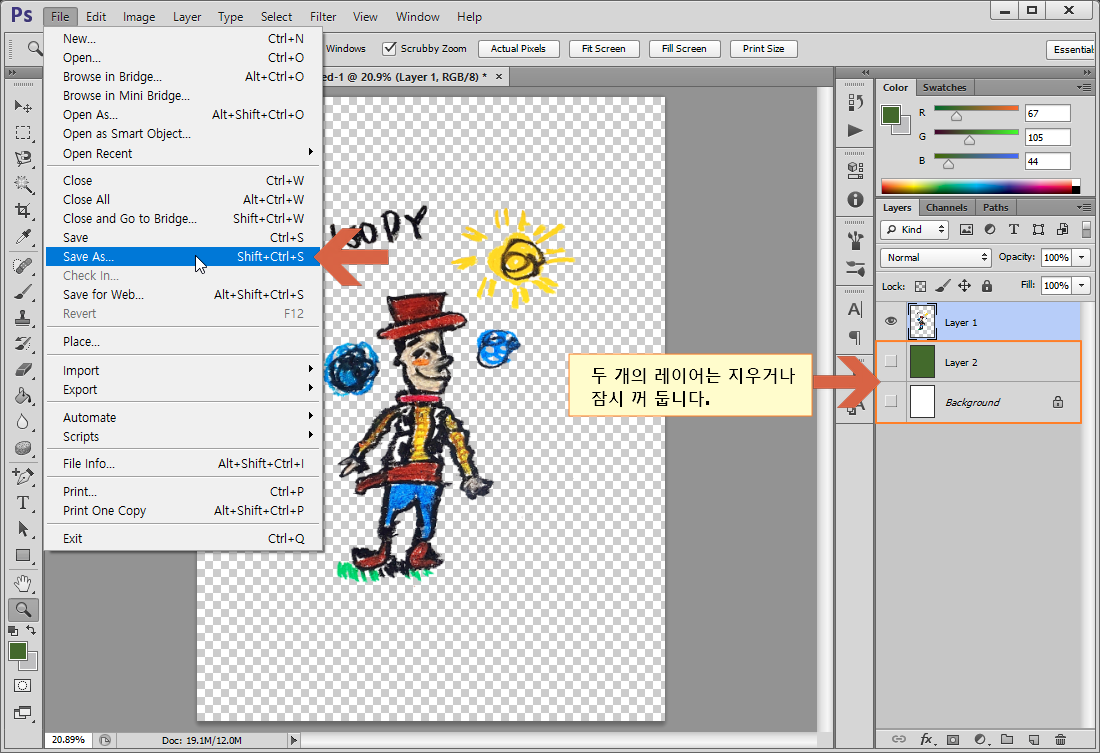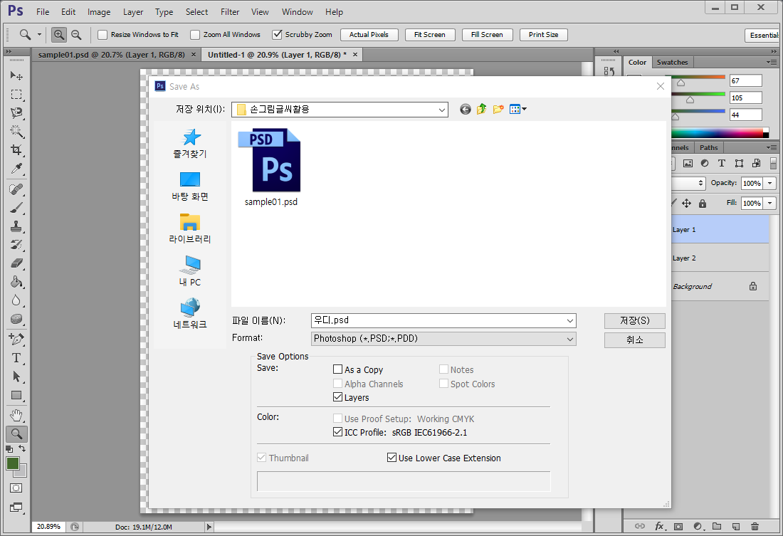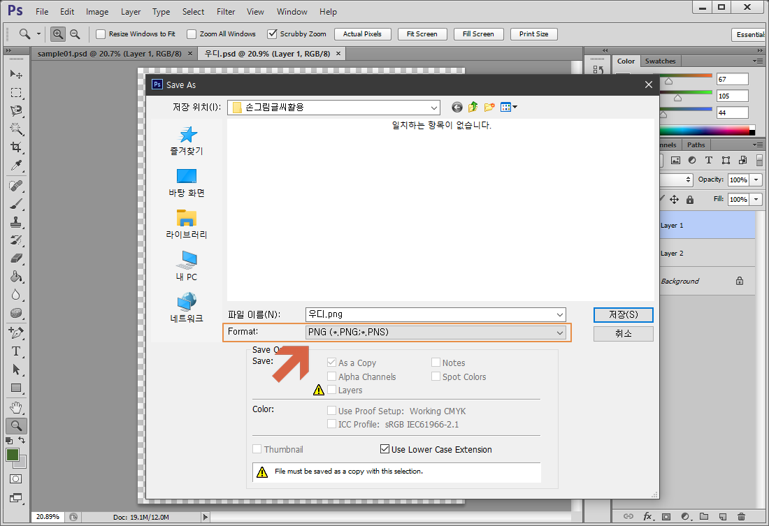배경을 지운 이미지 원본을 PSD 파일로 먼저 저장합니다.