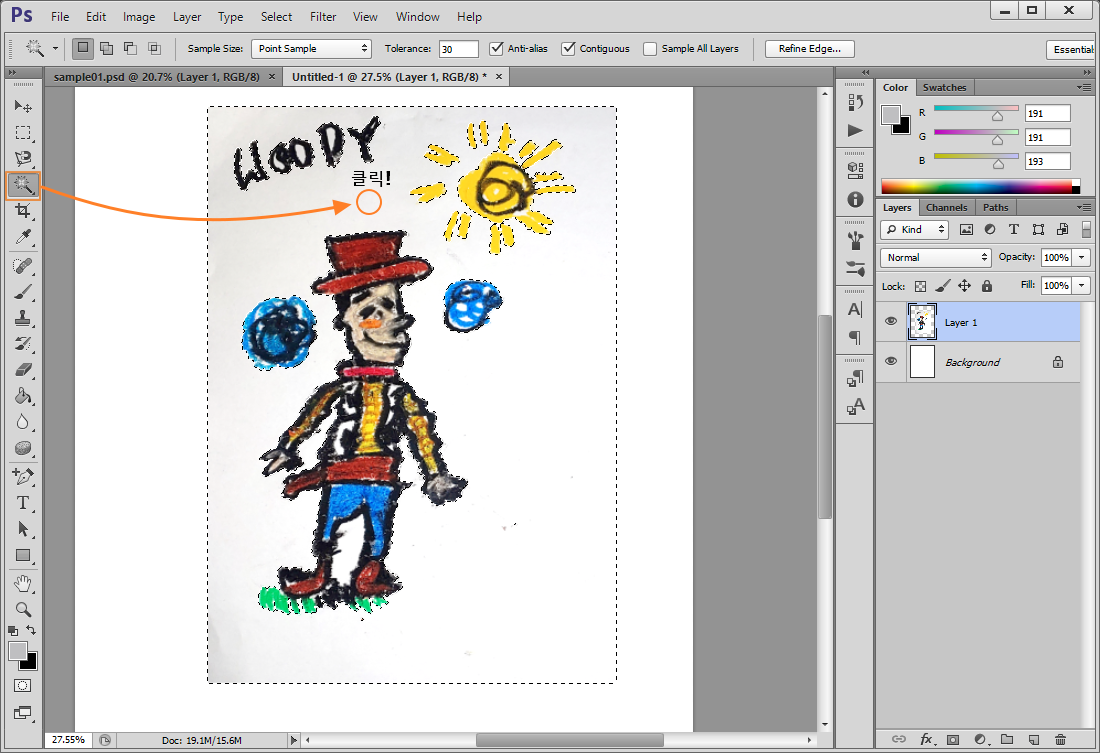 마법 지팡이 (Magic Wand Tool)를 선택해 주세요.