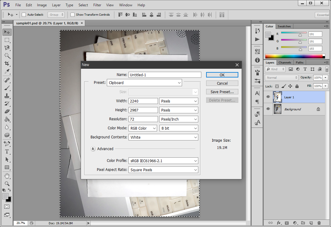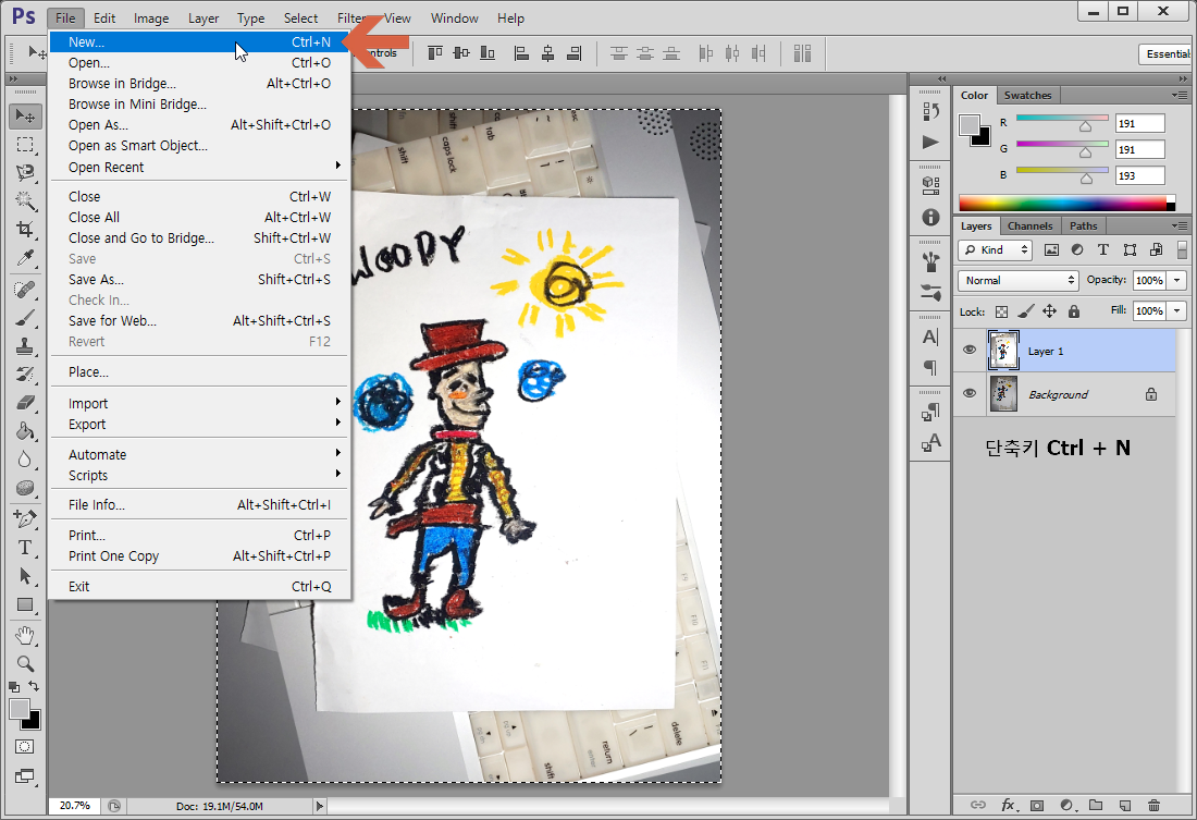 위에서 복사한 이미지를 붙여 넣을 새 캔버스를 만들겠습니다.