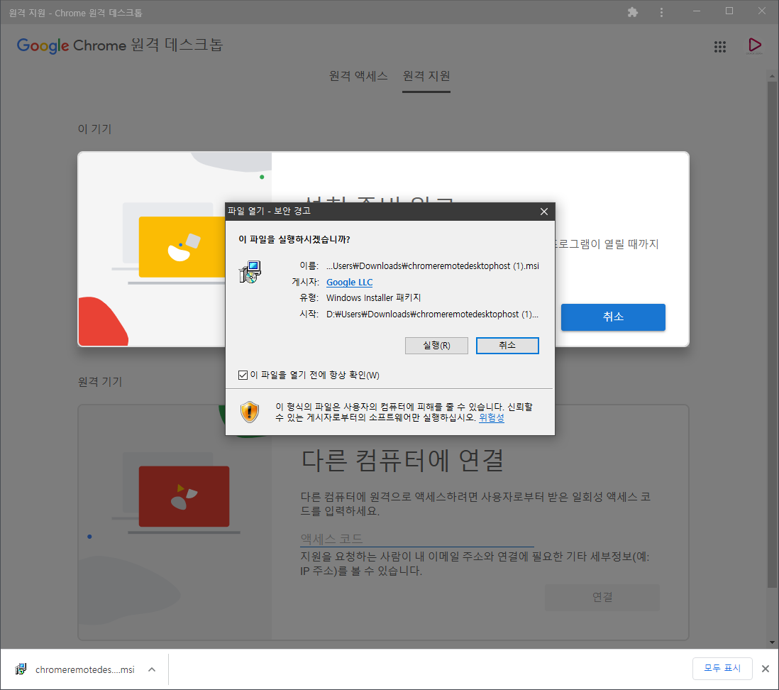 밑에 보니 크롬 원격 데스크톱을 설치해야 될 듯합니다.