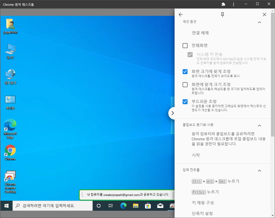 아래와 같이 크롬 원격 데스크톱 서비스에 연결되었습니다.