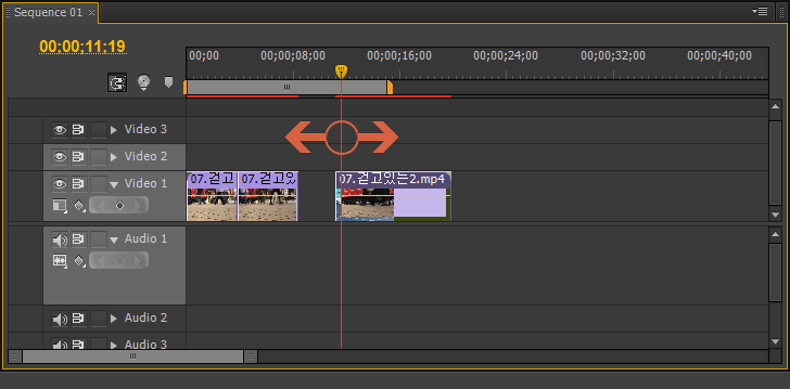 | Ripple Edit Tool / 리플 편집 도구 | B | 인접한 클립에 영향을 주지 않으면서 선택한 클립의 길이를 조절하는 도구. 조절하는 길이에 따라 시퀀스 전체 시간에는 변화가 생김 |