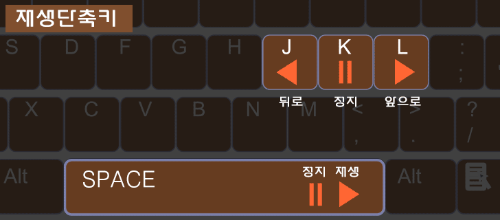 J K L 키 : 재생 제어는 키 순서대로 뒤로/정지/앞으로 할 수 있습니다.