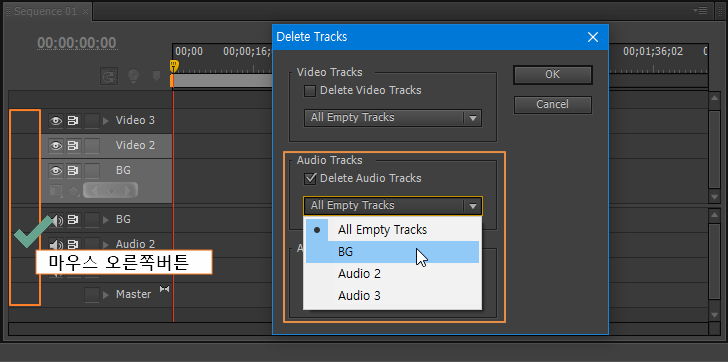 수량조절 : 사용하지 않는 빈 트랙 삭제