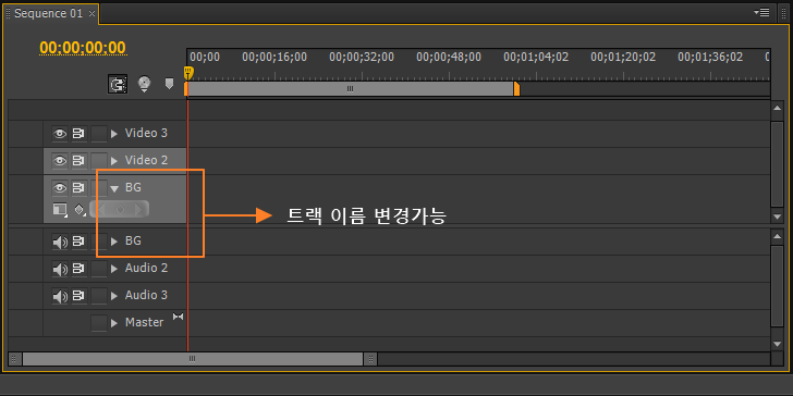 비디오 트랙과 마찬가지로 프리미어를 처음 실행하면 3개의 오디오트랙이 만들어지지만 마스터 오디오트랙이 하나 더 있습니다.
