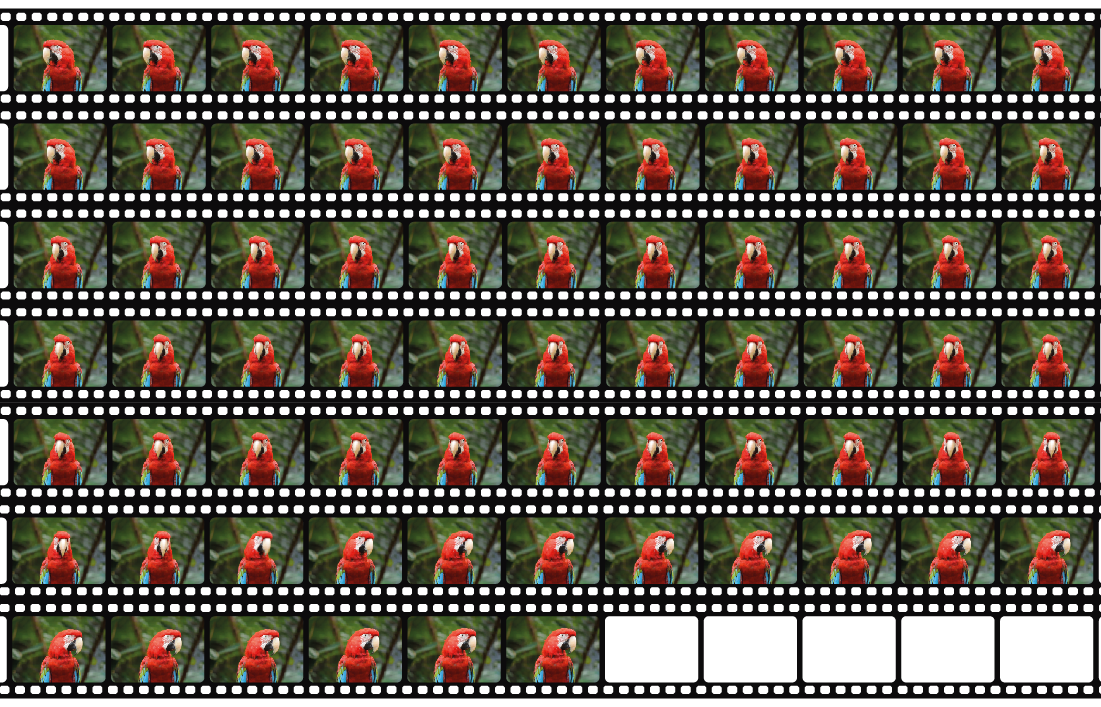 요즘은 거의 사용하지 않지만 일반적으로 필름 카메라로 사진을 찍으면 필름 한 컷이 한 장의 사진으로 만들어지죠. 영상에서는 이렇게 찍은 사진을 연속으로 보여주는 것이며 보통 1초에 24, 30, 60개의 사진을 연속으로 보여주는 것입니다.