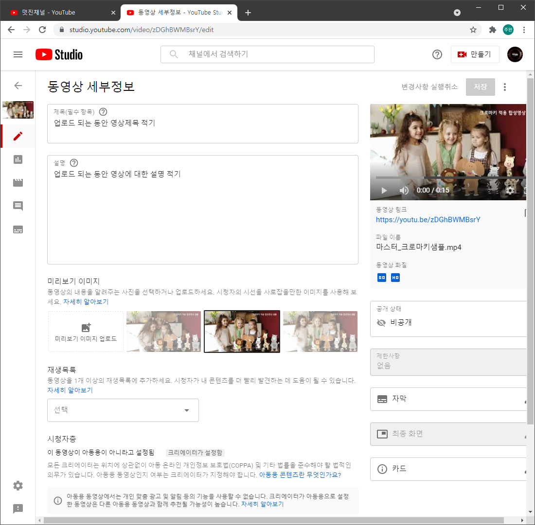 동영상 세부정보 수정