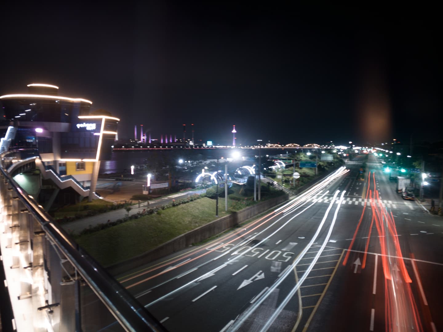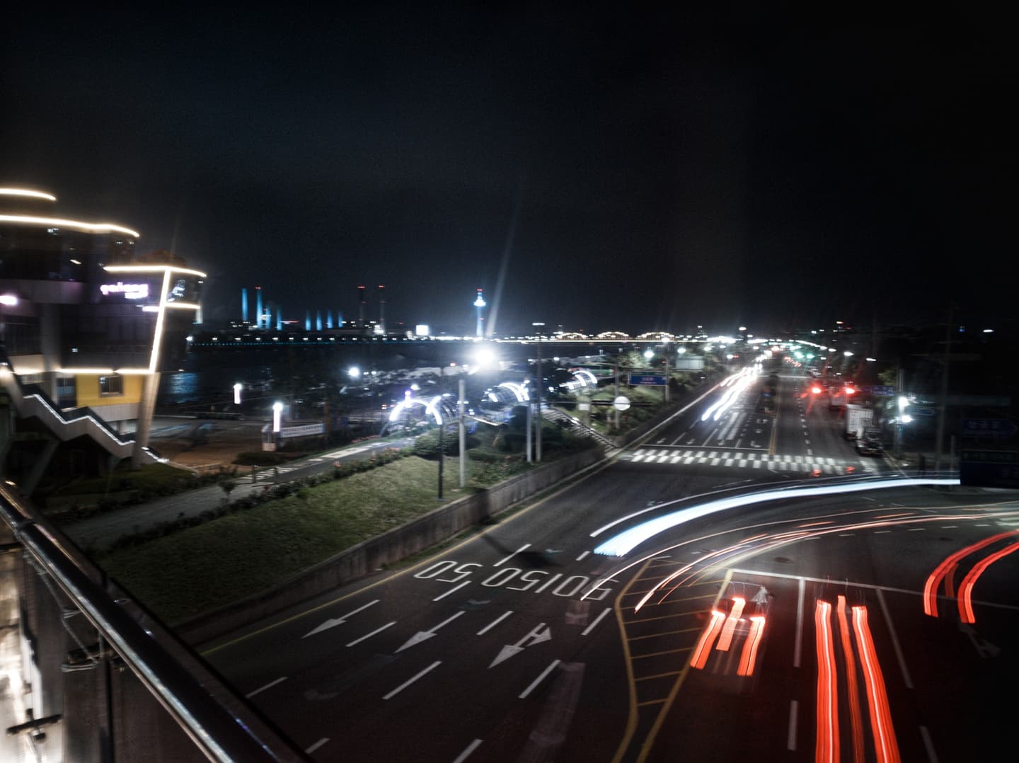 스마트폰으로 자동차 불빛 궤적이 찍히는지 시험해 본 사진 입니다.