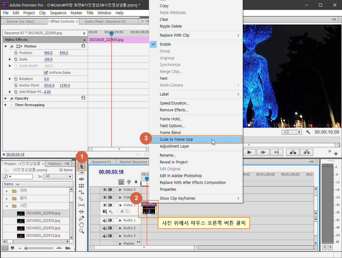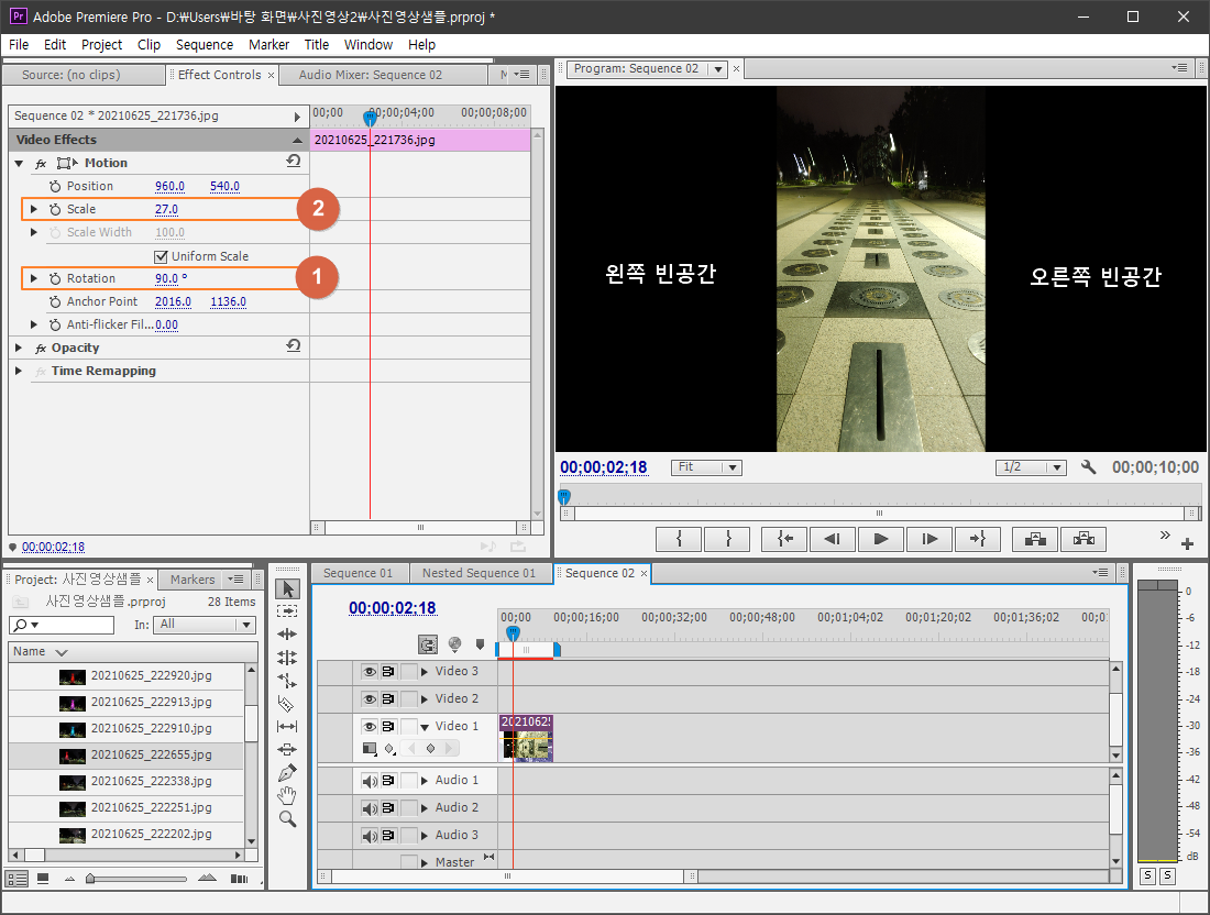 4. 시퀀스 크기에 맞춰 사진 크기 줄이기