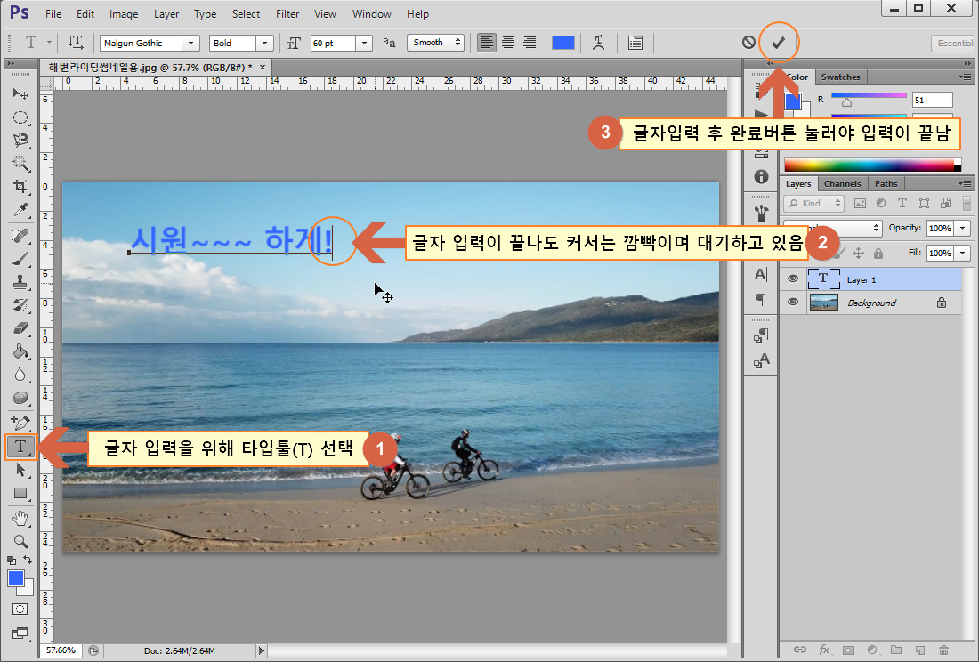 ① 도구 패널에서 글자 입력도구인 Type Tool 선택