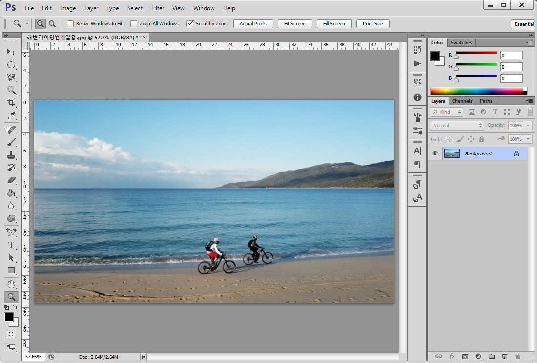 이미지를 본격적으로 편집하기 전에, 프리미어에서 저장해 놓은 그림파일을 포토샵에서 불러와서 크기 조정과 캔버스의 확대/축소/이동 방법을 알려드리겠습니다.