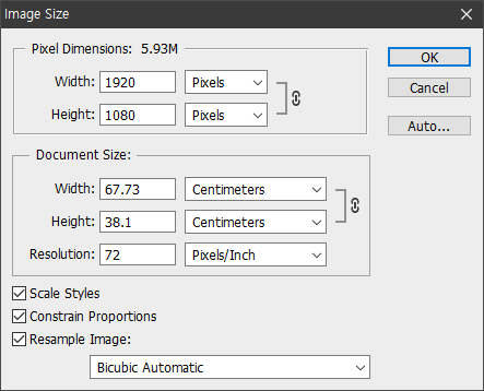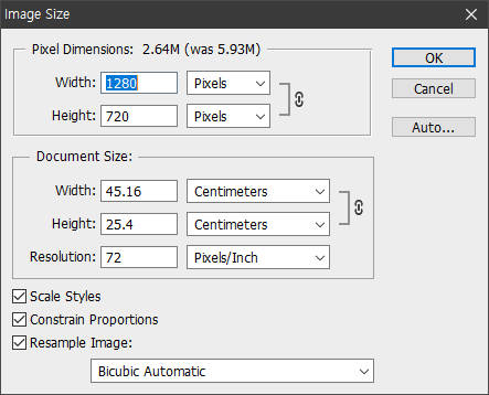 이미지 크기 조정할 수 있는 메뉴 : Image Size