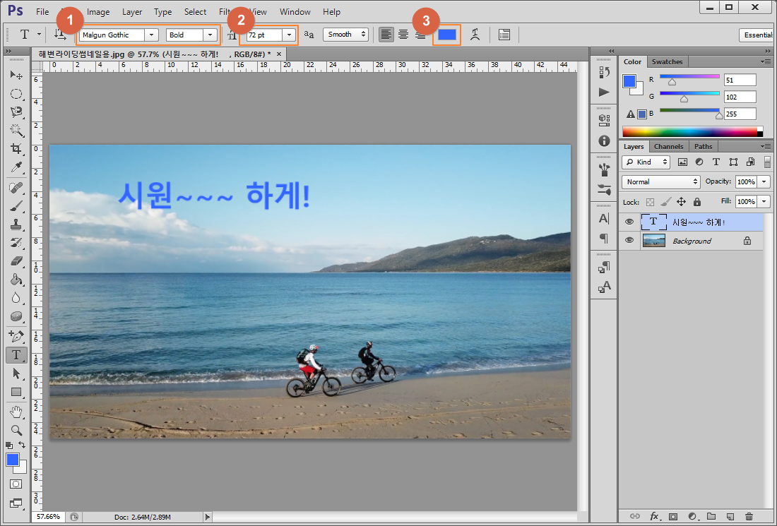 ② Color : 테두리 색상 - 배경과 잘 조화되면서 글자가 잘 보이는 색상 선택