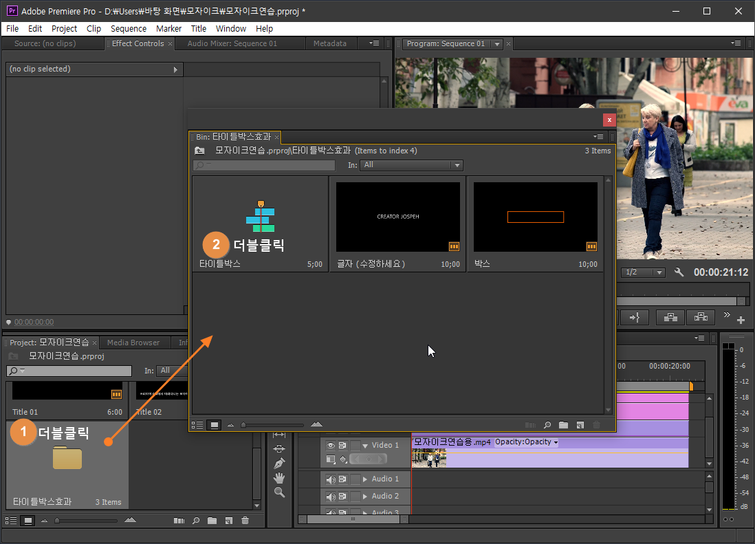 ② '타이틀박스' 시퀀스 더블클릭