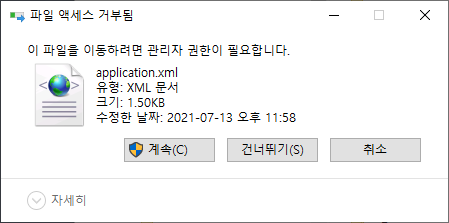 3.4 저장 후 바탕화면의 application.xml 파일을 다시 원래 위치로 이동해 줍니다.