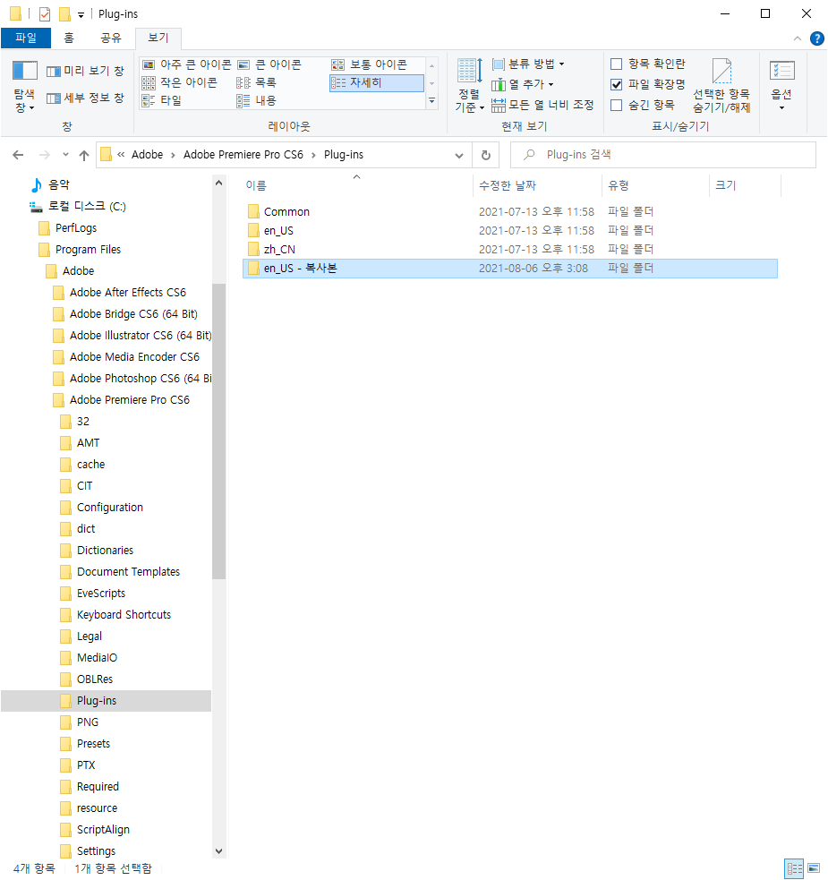 C:\Program Files\Adobe\Adobe Premiere Pro CS6\Plug-ins 폴더로 이동한 후.