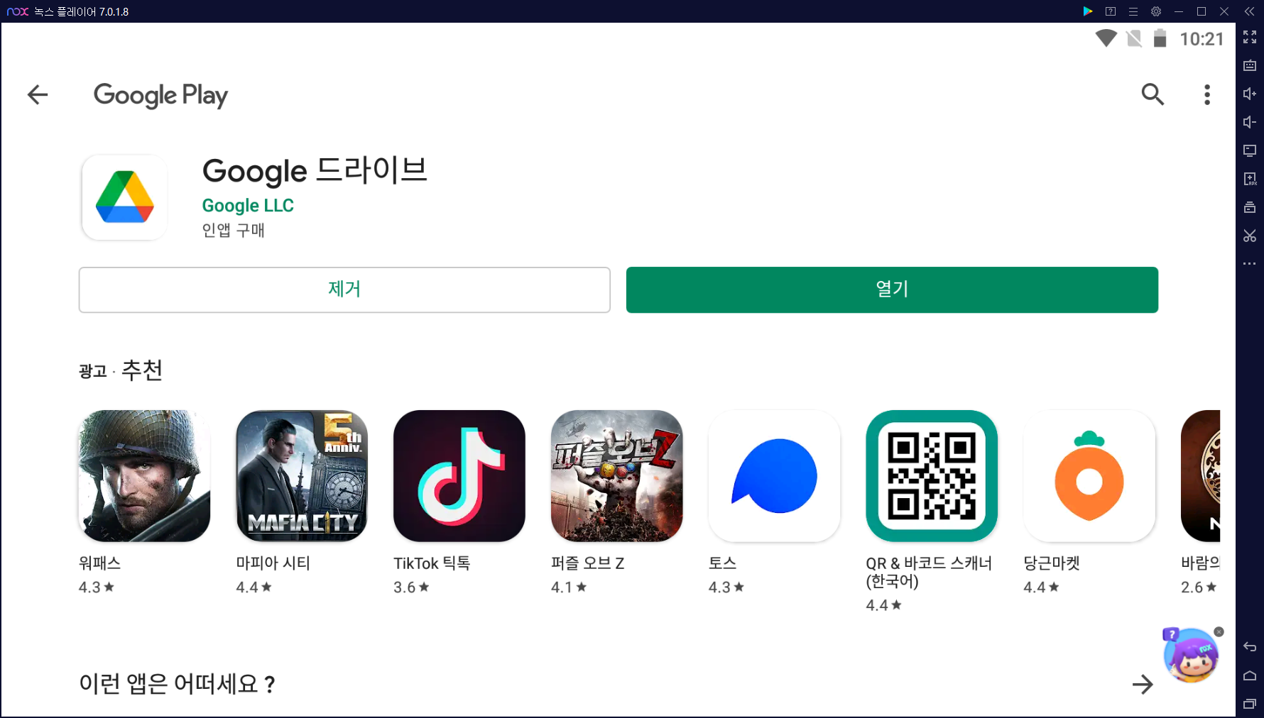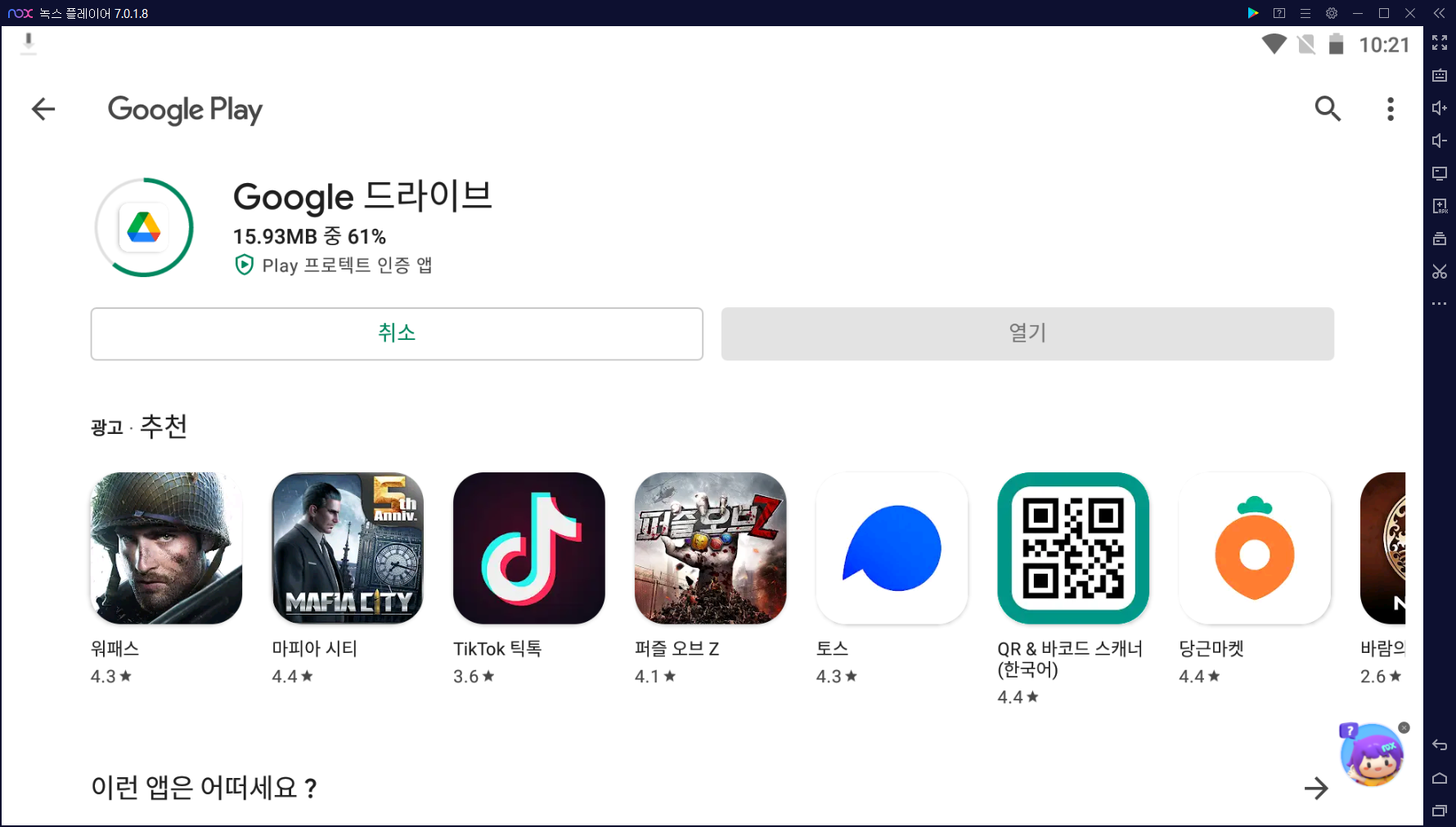 Google 드라이브 앱 페이지에서 다시 [ 설치 ] 버튼을 눌러주세요.