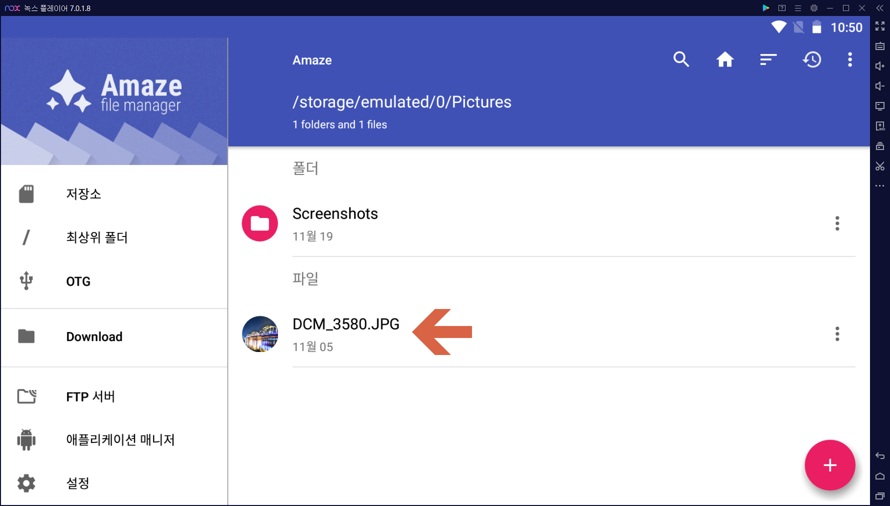 복사가 완료되면 아래와 같이 Amaze 앱이 실행되면서 복사된 파일을 보여줍니다.