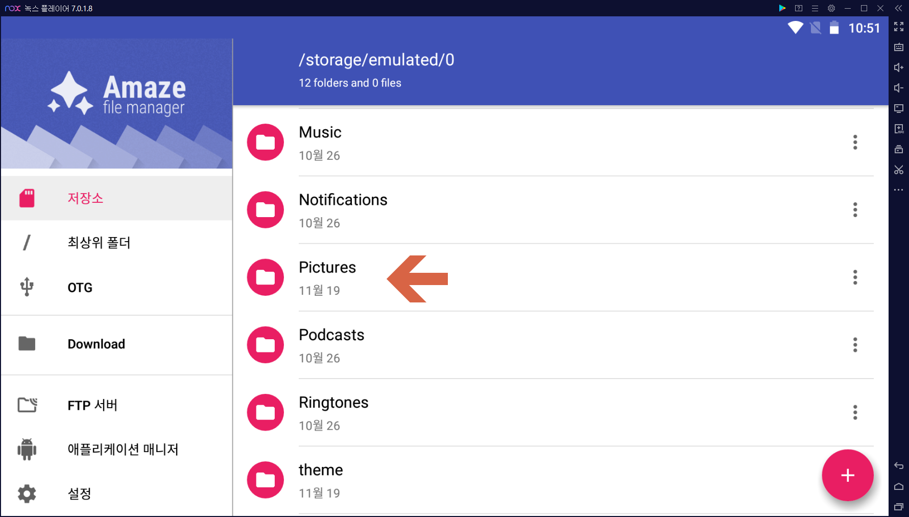 복사가 완료되면 아래와 같이 Amaze 앱이 실행되면서 복사된 파일을 보여줍니다.
