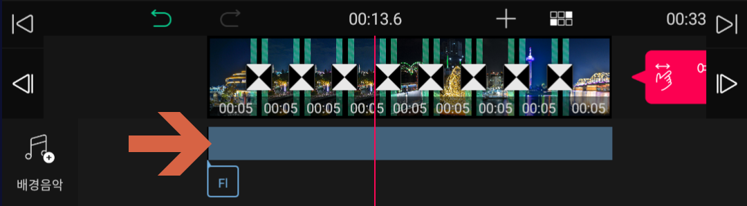 추가된 배경음악 모습 (영상의 길이와 같음)