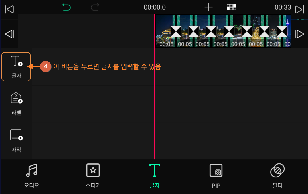 ③ T 글자 버튼 눌러서 글자용 타임라인 열기