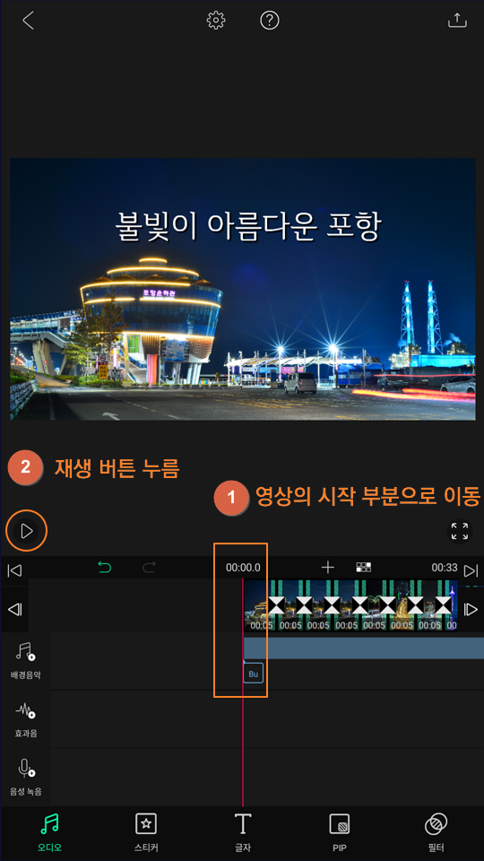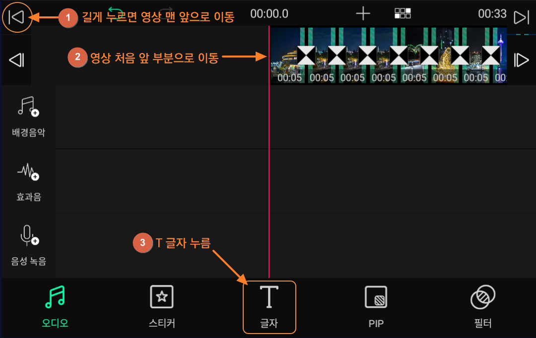 ① 영상의 시작 부분을 맨 처음으로 이동