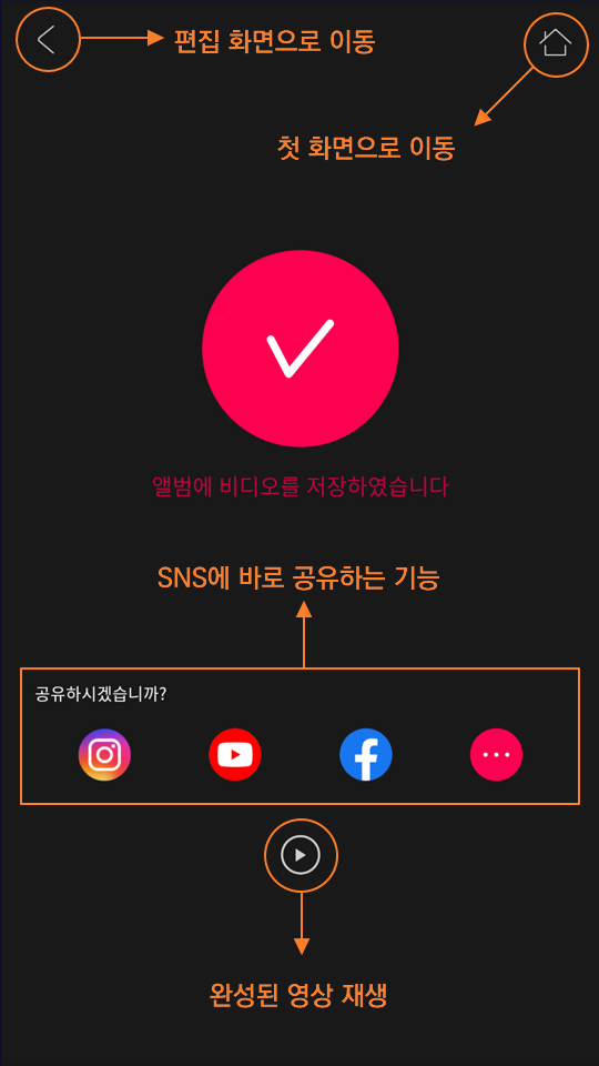 | ③ 갤러리에서 영상 업로드할 영상 선택 | ④ 미리보기 재생화면에서 [다음] 누름 |