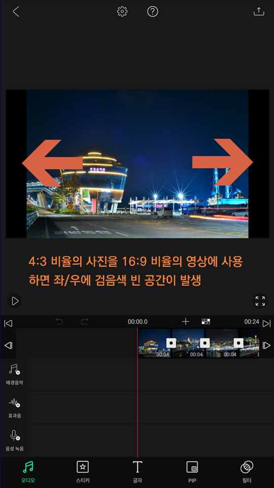그래서 다음 과정은, 이러한 효과를 이용해서 좀 더 영상의 느낌이 나도록 만들어 보도록 하겠습니다.