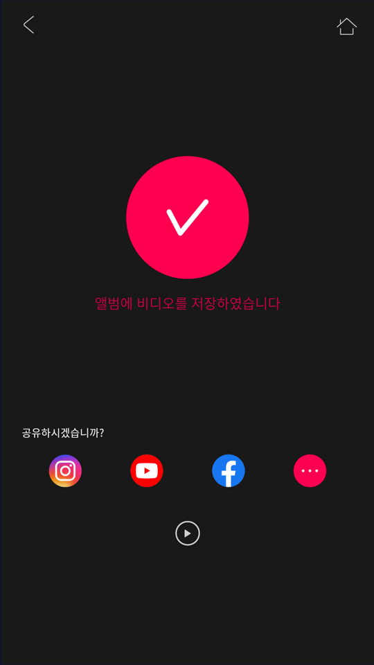 업로드까지 완료한 영상을 재생해 보면서 영상 아래의 공유 버튼을 눌러서 카카오톡을 통해 가족 또는 지인들께 공유하여 보세요.