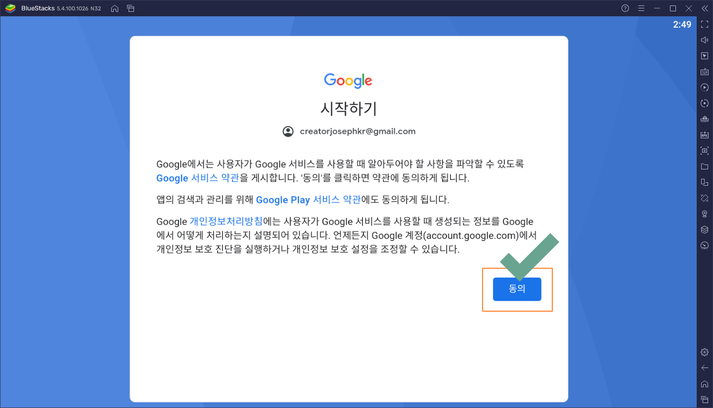 플레이스토어에서 앱을 설치하기 위해서는 구글계정을구글 계정을 등록해야 합니다. 유튜브용으로 만들어 놓은 구글 계정을 등록해 보세요.