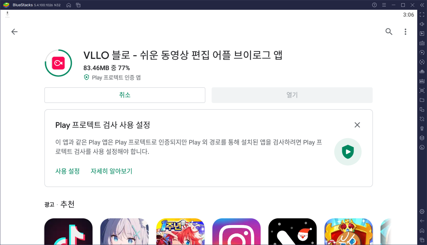 아래와 같이 블로(VLLO) 앱이 검색되었으며 [설치] 버튼을 눌러서 설치합니다.