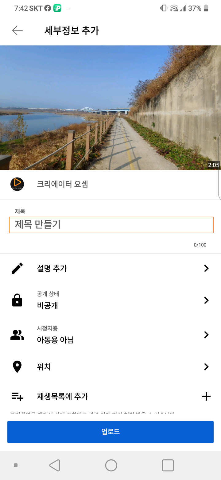 이 단계에서 유튜브에 올리지 않고 종료했다가 나중에 유튜브 앱에서 직접 올려도 됩니다.