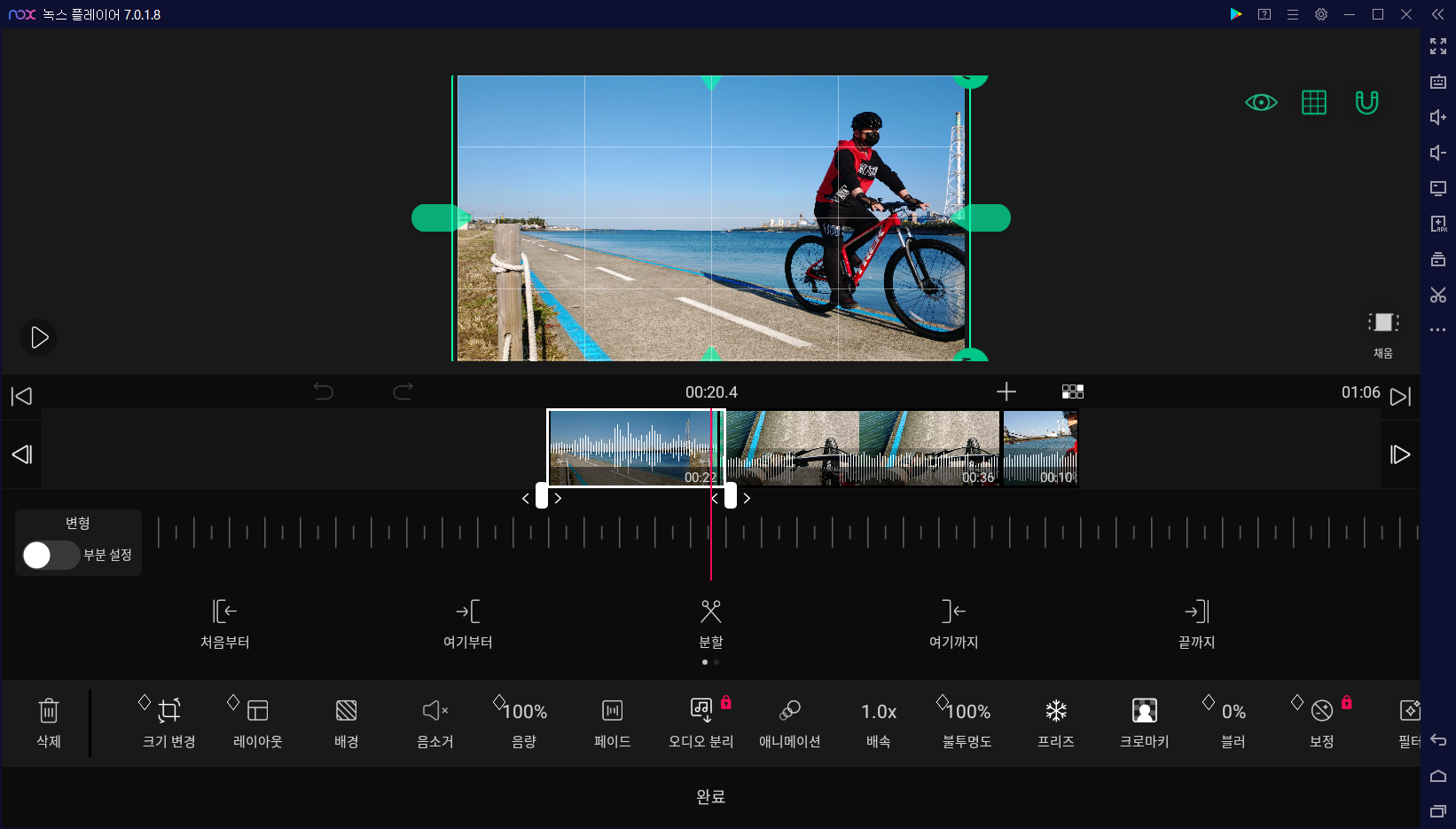 ③ 아래와 같이 안드로이드 에뮬레이터인 녹스(Nox)에서 블로(VLLO) 앱이 가로모드로 실행되었습니다.
