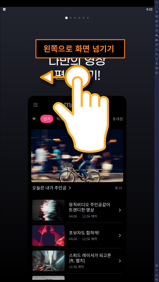(1) 아래와 같이 소개 화면이 나오면 화면을 터치하여 왼쪽으로 넘깁니다. (5회)