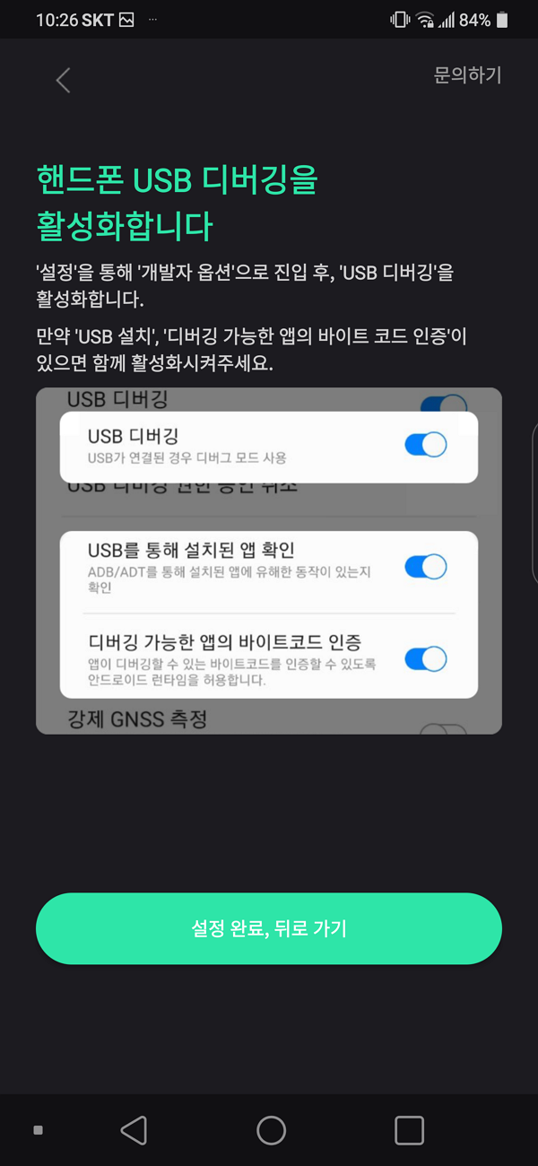 아래 가이드를 보면서 스마트폰의 USB 디버깅을 활성화하세요.