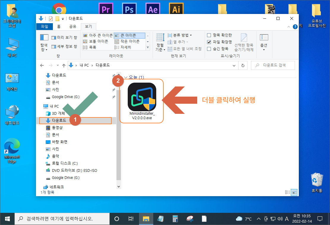 ① 다운로드 폴더에서 ② 파일을 찾아서 더블 클릭하여 실행