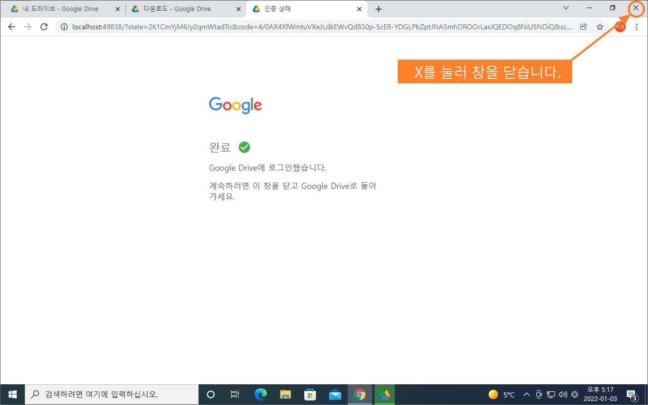 로그인되었다는 알림 내용이 나오면 브라우저를 닫으면 됩니다.