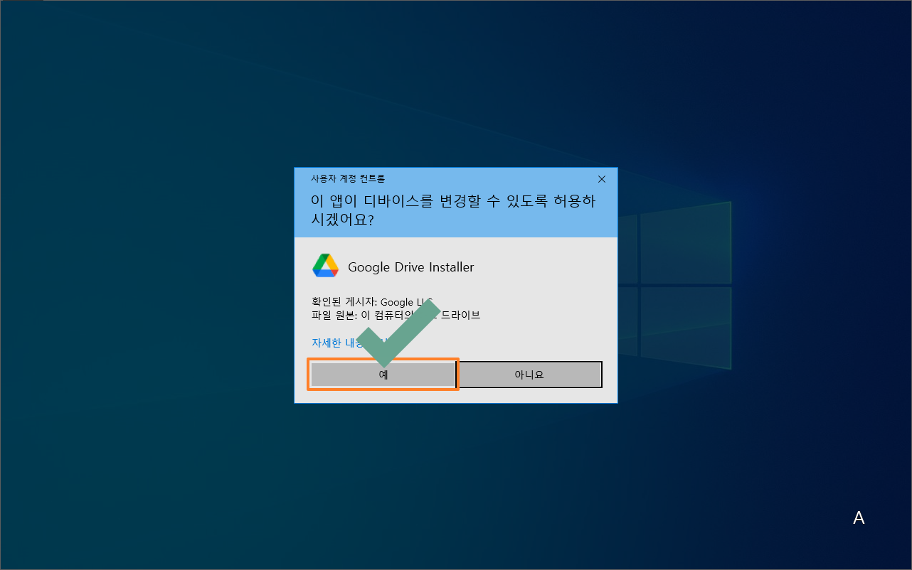 다운로드한 설치 프로그램을 실행 후 디바이스 변경 허용창에서 [ 예 ] 버튼을 누릅니다.