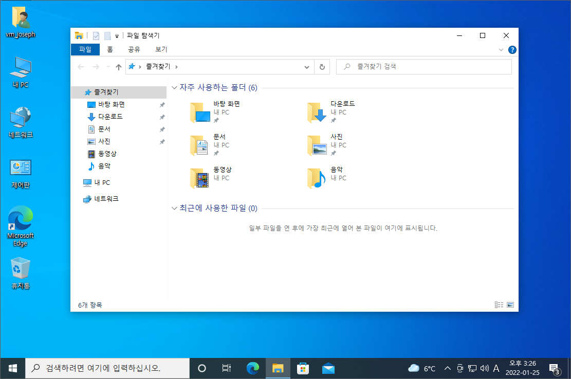 실행된 파일 탐색기의 모습이며, 윈도우에서 관리하는 기본 폴더의 모습도 볼 수 있습니다. 바탕화면도 폴더라는 사실, 꼭 기억해 놓으세요!