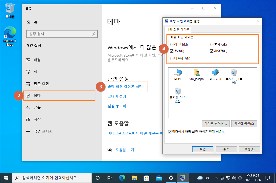 3. 바탕화면에 윈도우 기본 아이콘 꺼내기
