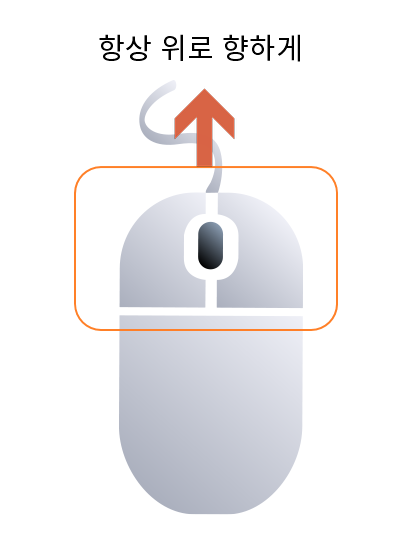 마우스는 버튼이 있는 쪽을 위로 향하게 해서 사용합니다.