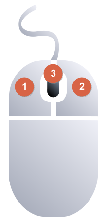 일반적으로 컴퓨터 마우스는 두 개의 버튼과 한 개의 휠 버튼을 갖고 있습니다.