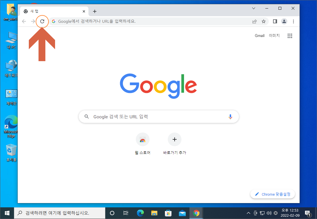 크롬 브라우저의 🔃새로 고침 버튼 위치