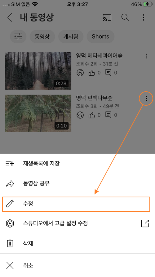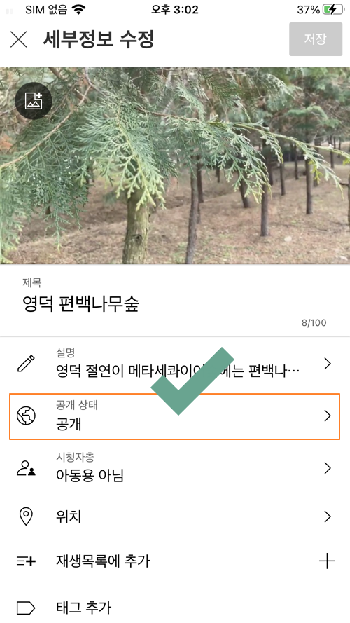 ① 동영상 관리 메뉴에서 [공개 상태]를 누릅니다.
