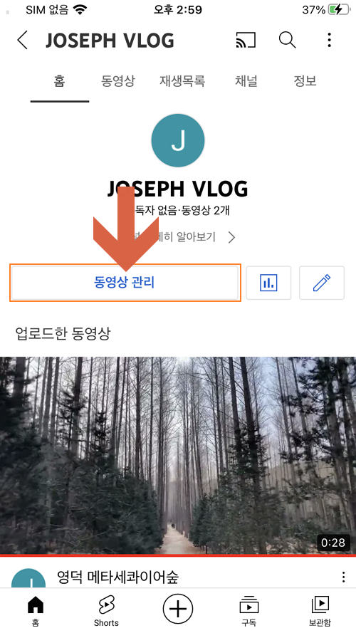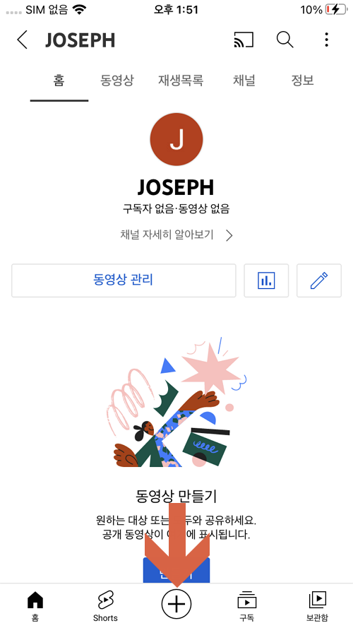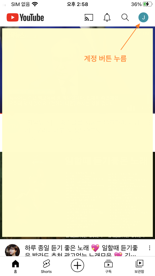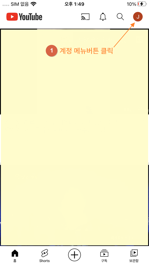 1) 스마트폰의 YouTube 앱에서 내 채널로 들어가기