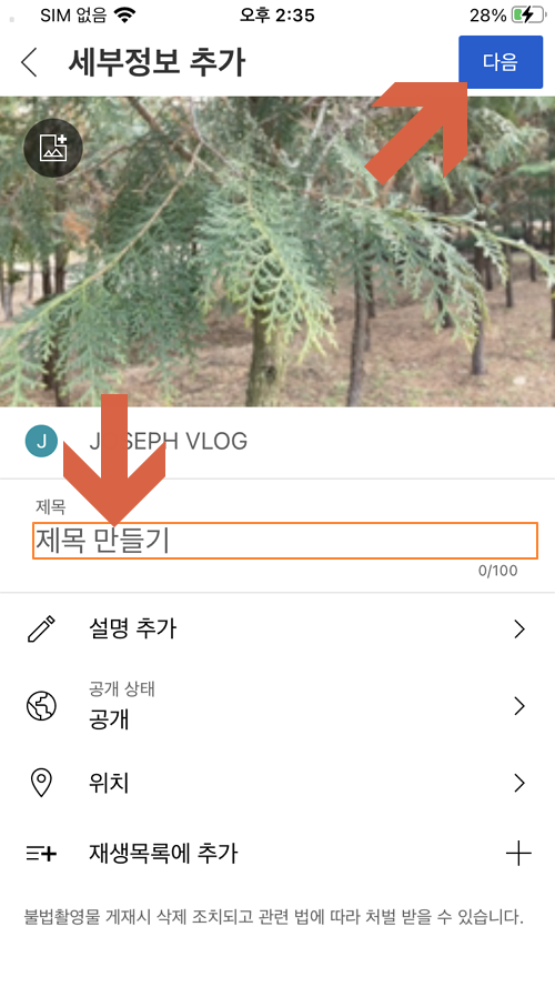 스마트폰에서 촬영 또는 편집한 영상을 컴퓨터를 사용하지 않고 스마트폰에서 직접 업로드할 수 있습니다.